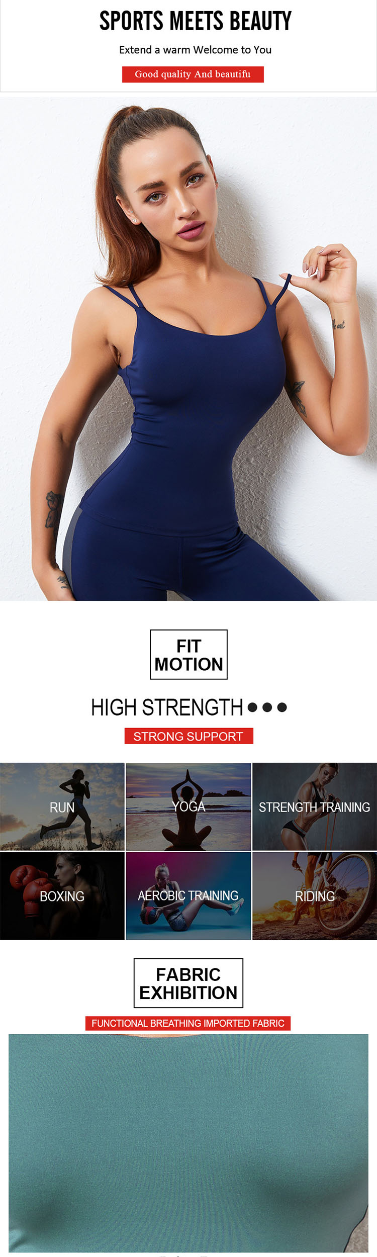 Multiple hollow details are added to the gym t shirts for ladies, which can be combined with the mesh fabric of the shoulder strap to maximize the breathability. It can also incorporate details such as buckles and fake two pieces to enhance the visual effect. It is recommended to extend the length of the bottom hem and increase the coverage of the vest to enhance the support performance of the single product.